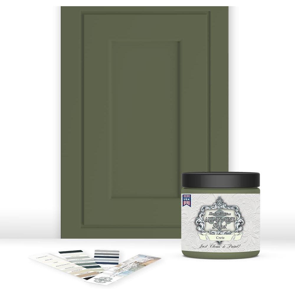 ALL-IN-ONE Paint, Durable cabinet and furniture paint. Built in primer and top coat, no sanding needed. Includes our 30 featured color card - Stormy (pastel blue), Quart(Crete)