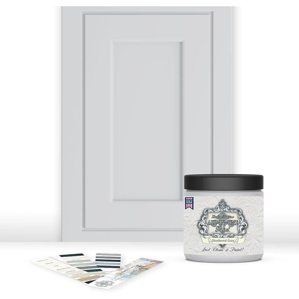 ALL-IN-ONE Paint, Durable cabinet and furniture paint. Built in primer and top coat, no sanding needed. Includes our 30 featured color card - Stormy (pastel blue), Quart(Heathered Gray)
