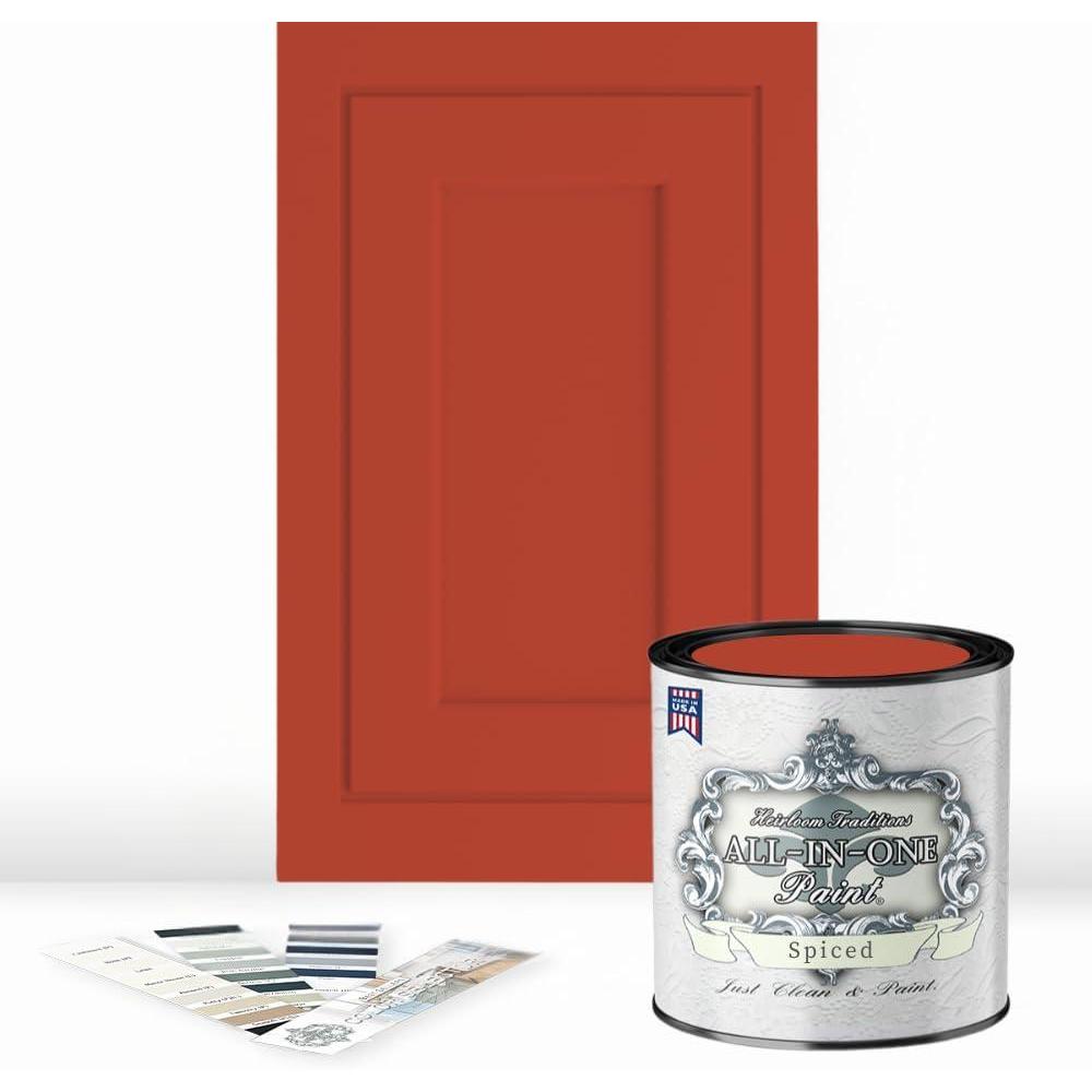 ALL-IN-ONE Paint, Durable cabinet and furniture paint. Built in primer and top coat, no sanding needed. Includes our 30 featured color card - Stormy (pastel blue), Quart(Spiced)