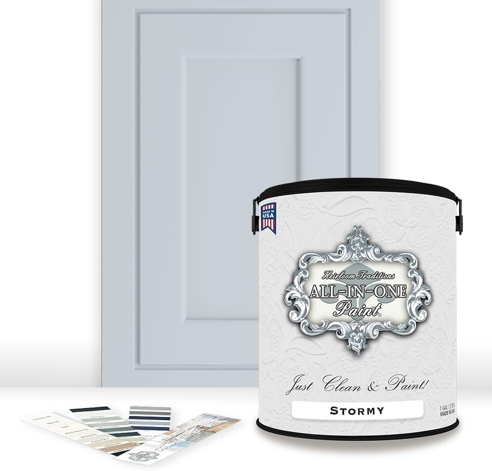 Be the first to review “ALL-IN-ONE Paint, Durable cabinet and furniture paint. Built in primer and top coat, no sanding needed. Includes our 30 featured color card – Stormy (pastel blue), Quart(Stormy)”