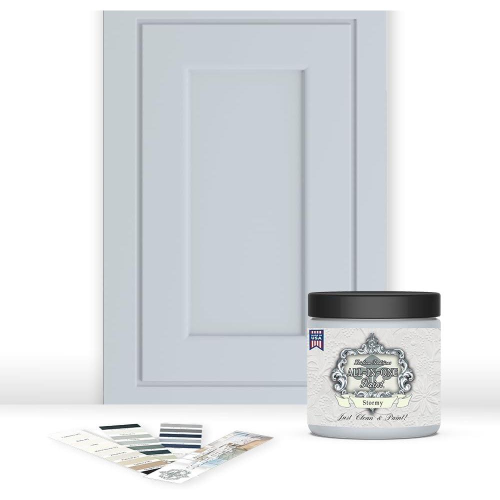 ALL-IN-ONE Paint, Durable cabinet and furniture paint. Built in primer and top coat, no sanding needed. Includes our 30 featured color card - Stormy (pastel blue), Quart(Stormy)